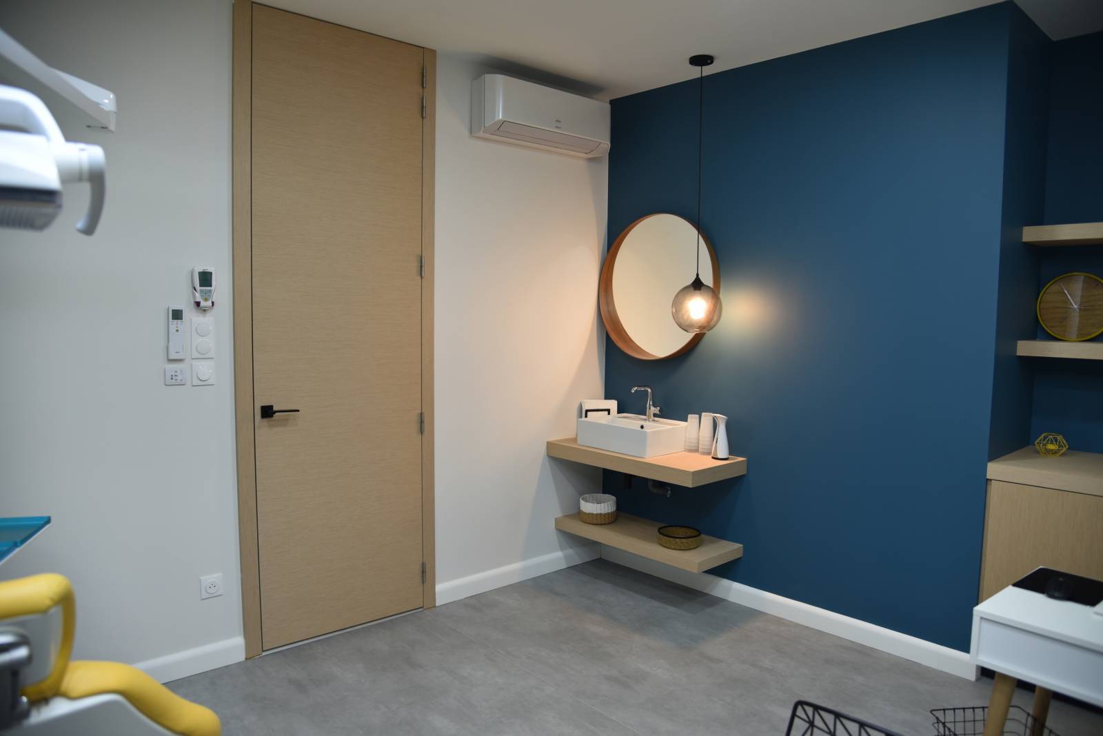 Nous prenons en compte les données techniques dentaires et les données des matériels du cabinet pour les intégrer dans les locaux. Par exemple, un bon agencement doit favoriser le respect des règles d’hygiène et d’asepsie, avec notamment une pièce spécifique pour la stérilisation, un local dédié pour le stockage des déchets, un aménagement de la salle de soins pour la désinfection des mains…