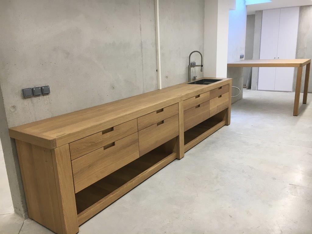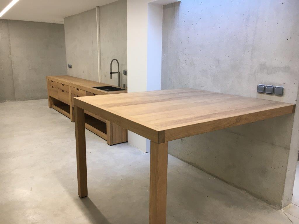 Fourniture et mise en place de deux établis réalisés en frêne massif,