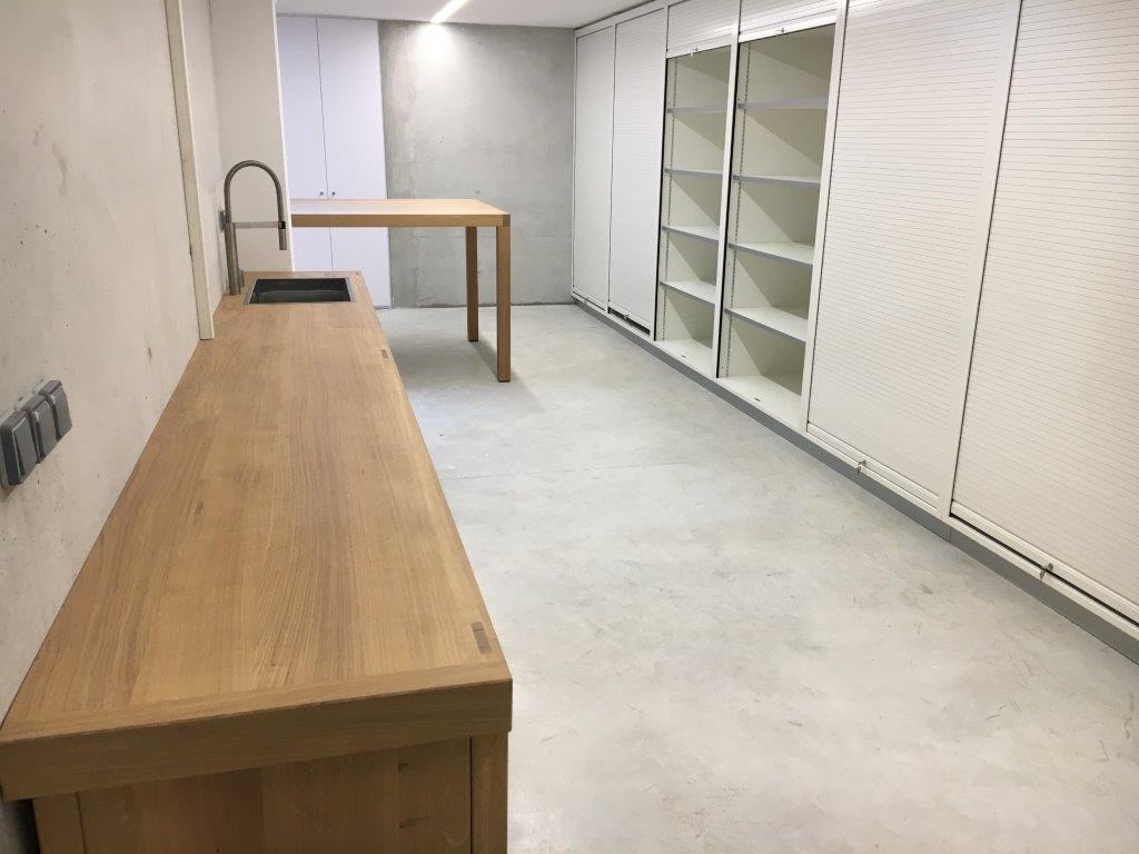 Fourniture et mise en place de huit armoires de rangement, réalisées en mélaminé blanc hydrofuge pour tous les aménagements intérieurs avec en façade : un rideau roulant aluminium en pose verticale, l'ensemble